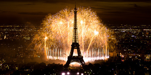 Note: top image is Feu d'artifice du 14 juillet 2011 sur le sites de la Tour Eiffel et du Trocadéro à Paris vu de la Tour Montparnasse - Fireworks on Eiffel Tower [cropped] by ErasmusOfParis at flickr; some rights reserved.