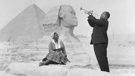 Note: top image shows Louis Armstrong and his wife Lucille in Egypt, 1961; read more in “Dig Us”: 60 Years of Louis Armstrong at the Sphinx at the Louis Armstrong House Museum. Bonus reading: Satchmo’s Wonderful World: Louis Armstrong Center Amplifies An Artist’s Vision, Louis Armstrong, the King of Queens and Louis Armstrong’s Lip Balm, all at The New York Times.