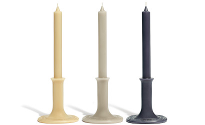 A Ray ornament for the small and classic candles (shown above left and right; $165) and a Ray stand for the classic candles (above center, $390).