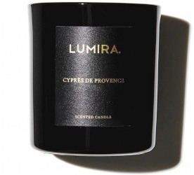 From Lumira, the Cyprès de Provence scented candle: "LUMIRA's candle evokes a Mediterranean journey, capturing the sweet essence of Orange Blossom and the woody notes of Cypress trees lining the streets of Provence. It's blended with spicy Pink Pepper and Cardamom and balanced with a warm base of Oriental Vanilla, Cedarwood, Amber and Musk." 300g, marked down from $70 to $42 at Net-A-Porter.