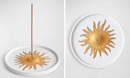 From L'Objet, the Soleil incense holder, in porcelain with 24-karat gold accents. Available for pre-order at Neiman Marcus, $95.