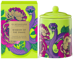 More Year of the Snake...the Wisdom of the Snake candle from Glasshouse. It doesn't wake as many lemmings for me as last year's Dance of the Dragon, but maybe it works for you? "With no love for straight lines, No head or tail and no end in sight, The serpent spirit zigzags and sidewinds Mesmerizing, leading you without warning. To a world of more mystery. To a year of no limits. This is the Wisdom of The Snake. // Fresh Orchid and sweet Citrus, intertwined with rich Cedarwood and Musk, create a symphony of luck and abundance for the year ahead." $55 for 380g at Glasshouse.