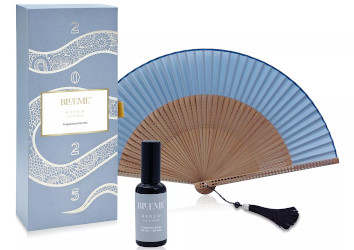 For the Year of the Snake: a fragranced fan. "Celebrate with elegance and a touch of tradition with Blueme’s Lunar New Year fan and Renew- Ivy & Rose fragranced fan spray. The beautifully crafted fan, inspired by the snake's sleek and fluid form, pairs with a delicately scented fan spray that adds a fragrant, refreshing mist to each graceful wave. Ideal for refreshing any space, this set is a symbolic gesture to welcome renewal, positivity, and joy. Recharge the senses as the delicate fusion of rose, cucumber, and white peony evokes a sense of fresh beginnings and purity. As the fragrance settles into its base notes of ivy leaf and rosewood, it leaves a comforting embrace, capturing the magic of rediscovery and reconnection." On markdown at Saks, $68.