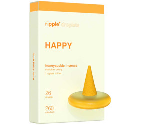 From Ripple+, honeysuckle low-smoke incense cones: "HAPPY brings together the rich & delicate extracts of manuka + peony, bringing out a more supreme and pristine version of you. Emitting the sweet scents of honeysuckle, you're sure to feel more colorful and jubilant!" 26 "droplet" cones + sea glass holder, $24 at CO Bigelow.
