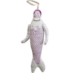 From Skippy Cotton: "This sweet mer person is machine embroidered in dark magenta thread on a soft blue linen. Hand turned and stuffed with cotton and fragrant French lavender. Hung with natural twill tape. // Skippy Cotton's signature lavender-scented ornaments are a lovely gift for any time of year. Perfect for gift toppers, closet or drawer sachets, holiday ornaments, or year-round decor. " $32 at Beautyhabit.