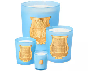 Trudon Versailles candles come in many sizes (burn times are approximate): Petite (70g/20 hrs./$55); Classique (270g/60 hrs./$135); Intermède (800g/120 hrs./$330) and Grande (2.8kg/300 hrs./$690); Versailles also comes in Le Diffuseur* (350ml/4 mo./$250).