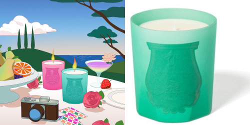 Trudon's "Lost in a moment" limited edition duo for summer, with candles in Under the Trees ("An invigorating green juice Under the Trees unfolds as a refreshing, aromatic-green juice, complemented with bright notes of cedar wood. Its invigorating fragrance is composed of a cucumber accord with a hint of blackcurrant buds in the head notes, a lively spearmint and jasmine heart, fused with notes of cedar in the base") and Summer Haze ("A sweet-floral composition Summer Haze features a sweet and floral scent that exudes pure joy. Sophisticated and daring, the fragrance consists of a red berry macaroon accord in the head notes, an opulent heart of absolute rose and a musky base with warm notes of Tonka bean"). Both fragrances by perfumer Alexandra Carlin, 270g for $140 each at Trudon.
