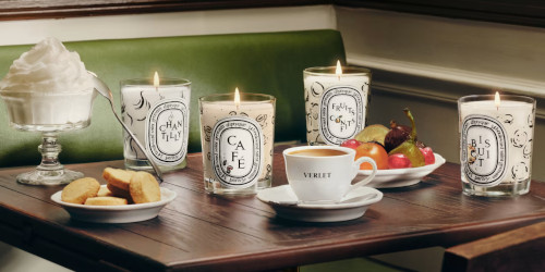 From Diptyque's collaboration with Café Verlet in Paris, four limited edition candles illustrated by artist Clym Evernden: Café, Biscuit, Chantilly and Fruits Confits. The 190g candles are $78; a coffret of Café, Biscuit and Chantilly in 70g is $135. (There is also a candle lid decorated with a coffee bean for $115 and a porcelain trinket tray for $87.)