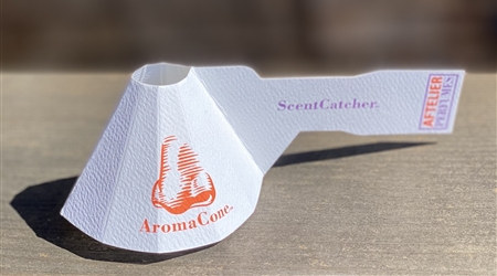 Mandy Aftel is reopening her Aftel Archive of Curious Scents at the end of this month (it's been closed since last March), and she has a fun new product for serious sampling: the AromaCone. "Our ScentCatcher AromaCone is a scent amplifier that acts like a magnifying glass for your nose. This elegant device focuses the aromas under it and creates a denser stream of odor molecules for you to smell. The AromaCone also maintains "nasal distancing" as part of a contact-free smelling experience. It provides a safe separation between you and what you are smelling, and from the other noses that smelled it before you. Inspired by an original suggestion from Becky Saletan." A set of 20 AromaCones goes for $40 at Aftelier.