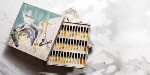 Running low on samples? Amouage's new limited edition Collector’s Sampler Set has 45 two ml vials (15 for men, 15 for women, 15 unisex, and included in that total are 4 yet-to-be-released fragrances). Available in 4 different box designs ("with a removable insert sheet, so the majestic box can transform into a multi-purpose decoration to be taken advantage of"), $395 at Amouage.