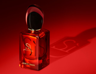 From Giorgio Armani, Sì Passione in the limited edition Laser bottle. "The flacon is embellished with metallic lacquering using innovative laser-cut technology, while the glass cap sublimates the bottle, giving it a bold, daring yet elegant look for you and your loved ones." In 50 ml Eau de Parfum, at Nocibe in France.