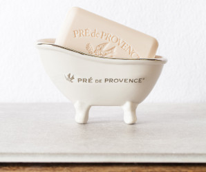 I will never need another soap dish in this lifetime, but if I did, the clawfoot tub from Pré de Provence is on my list. "A clawfoot bathtub inspired soap dish to enhance any kitchen or bath deco. Use traditionally or to hold trinkets and jewelry." $24.99. It holds a 250g soap, and aha, there's a new Lemon Mojito bar: "Lemon Mojito is a smooth summer blend of sparkling citrus, spicy ginger, juicy watermelon and fresh mint, wrapped in warm vanilla rum." $10.99 at Pré de Provence.
