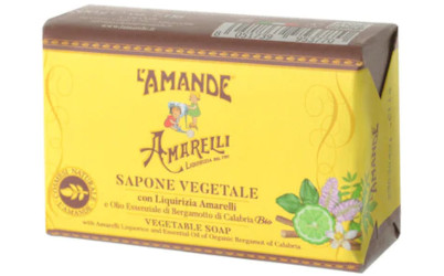 From Italian brand L'Amande, bar soap in Licorice and Bergamot: "Organic bergamot essential oil free of sensitizing substances and liquorice, from the prized Amarelli company from Calabria, both feature calming and soothing properties against irritation. This soap has an intense citrus scent, harmoniously blended with the drier note of liquorice." $8.95 for 200g at Smallflower.