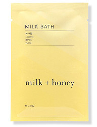 From Milk + Honey, the No. 05 Milk Bath Packet, with coconut, lemon and vanilla: "Infused with a sweet blend of vanilla and lemon peel oil, this luxurious Milk + Honey Lemon, Vanilla Milk Bath No. 05 is pure indulgence. Unwind as the organic coconut gently soothes and moisturizes, leaving your skin feeling silky smooth. Bath time has never felt or smelled this good." $6.50 at Ulta. (You can also buy it in a 147g jar for $32.)