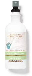 From Bath & Body Works, Orange Sandalwood Essential Oil Mist: "The power of orange and sandalwood essential oils paired with the benefits of aloe delivers a refreshing experience. Enriched with aloe, use as a body spray, a shower mist or to freshen up linens. Avoid spraying directly on face. Fragranced with natural essential oils and other natural fragrances." $14.50 for 156ml (and the matching body wash and body lotions are currently on mark down).