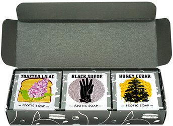 From Bruno Fazzolari's Fzotic brand, Opoponax bar soap: "Bruno Fazzolari created a rare soap using a limited quantity of genuine opoponax resin that they acquired. The soap has a rich, earthy fragrance balanced with sweet tonka bean and fresh cypress. Opoponax resin has been traditionally used in skincare and incense and is known for its calming properties. The soap includes their proprietary blend of botanical oils and clay, such as shea butter and apricot kernel oil, leaving your skin soft and delicately moisturized. This huge shower bar weighs in at nearly half a pound. " $18 for 200g at Smallflower.