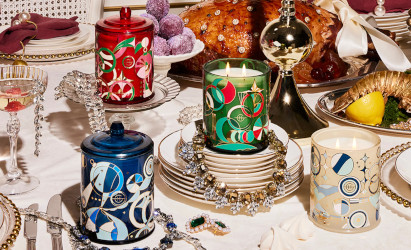 Holiday candles from Glasshouse: Festival of Lights (blue; "Sweet milky Tonka Bean, Apple and spices evoke the bright and joyful blessing of light this season"), Night Before Christmas (red; "Blackcurrant, Plum, Lemon and Lavender hung in the eventide air. Inspired by plum puddings, sweet treats and festive fruits, conjuring dream-like visions and the magic of Christmas"), Winter Wonderland (green; "The nostalgic, sensory immediacy of the tree, glistening prettily with snowflakes and sparkling with the scent of freshly cut fir and spruce, it’s Christmas at its most star-bright") and White Christmas (white; "Vivid and illuminating, Cedar Leaf, Fruity Clove and Eucalyptus evoke wintery escapes, while Fir Balsam places you amongst snow-capped trees"). Each 380g for $55 at Neiman Marcus (where you'll also find other sizes, home and bath items, and a Glasshouse advent calendar).