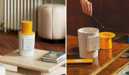 From Acqua di Parma, the Chapeau candle(s) in Luce di Colonia: "Inspired by both Acqua di Parma’s famous fragrance bottle and the hats that give the design its name, the Chapeau! candle is a playful, two-in-one creation that offers a new and exciting way to enjoy the brand’s Luce di Colonia scent. Designer Dorothée Meilichzon deploys glazed stoneware and ceramic to sculpt the two unique vessels, leaning into contrast and textural interplay. Enjoy the candles together as a single unit, then arrange them next to each other when lighting them for a celebration of craftsmanship and design." 1.6kg + 330g, £580 at Harrods in the UK.