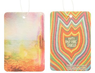 From Joya in collaboration with indie film studio A24: "We made car fresheners with A24! Experience our Movie Genre Candle collaboration in automotive form. Now, road trips can smell less like ambiguous pine and more like the rich mandarin of Horror, the smoked tar of Fantasy, or the wild honey of Noir. Available in all nine existing fragrances: Western, Horror, Musical, Sci-Fi, Fantasy, Thriller, Adventure, Rom-Com, Noir." $12 each at Joya Studio.