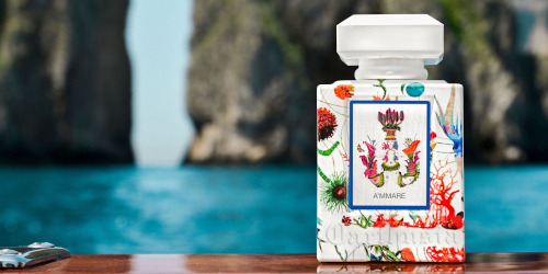 Carthusia has expanded the A’mmare line with bath products and travel accessories. There are travel bags and beach towels, sun screen, and a bunch of body products including this nicely packaged shower oil: "In a blue horizon, bergamot, sunny and bright, meets aromatic, slightly pungent rosemary. Salt crystallize on the skin, a refreshing plunge leaves room to what is new. Mint Leaves and its green tender smoothness and a hidden energy all around. Now the vision is fulfilled, the horizon complete. Cedarwood and Guaiac, a precious forest, protect Patchouly and Musk incoming gifts from faraway lands." $39.60 at 50ml.