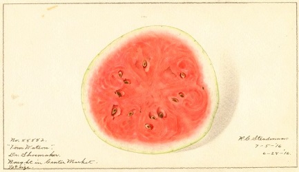 The scent and taste of watermelon screams !SUMMER! to me. As a child, cracking open a chilled watermelon was a celebratory event during steamy Virginia summers. At my urging (and purchasing, I bought the seeds), my father grew all types of watermelon varieties: classics, miniatures, ball-shaped; melons with pink, red, gold, yellow and white flesh. Watermelons originated in Africa but now are grown around the world. In Japan, the Densuke watermelon is grown in limited quantities only on Hokkaido; these rare, round watermelons with almost-black rinds sell for hundreds of dollars…or many thousands of dollars at auction (for single melons). I was surprised (given the perfume industry’s propensity for “fibs” and pretension) that today’s two watermelon-flavored perfumes didn’t list Densuke watermelon in the ingredients lists. Stay tuned!