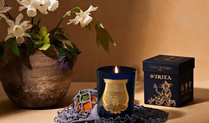 Cire Trudon's latest candle: "At the base of the High Atlas Mountains, the Ourika Valley is where it flourishes: iris thrives on sun and an essentially pure rural life. La Belle Matière Ourika marries a floral head note composed of gardenia, rose and magnolia with the spicy notes of benzoin and pink peppercorns to highlight iris’ sensual and powdery nature." $115.