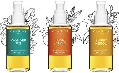 From Clarins, limited edition Dry Body Oils in Wonder Fig, Tonic Citrus and Sweet Neroli, $35 each for 100 ml, and each of those scents can also be found in a bunch of other products, including hand cream, foaming shower gel, body lotion, room spray and candles. At Clarins.