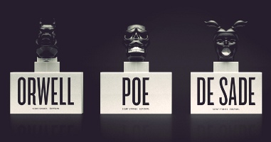 Concept bottles, unfortunately, but I would buy one in a heartbeat. From the Polish design firm Ah&Oh (and there are some wonderful closeups at their website) found via The Essence of an Author…Contained in a Perfume Bottle at Design Taxi. Shown are the bottles for George Orwell, Edgar Allan Poe and Marquis de Sade; there is also a bottle for Pierre Choderlos de Laclos.