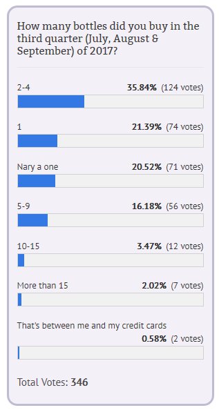 Donatella, Our Lady of Scented Excess,1 is NOT going anywhere,2 and to prove it she is here, right on schedule, to check on her flock. She is wondering just how many bottles you might have acquired in the 3rd quarter (July, August and September) of 2018. Confessing is good for you.
