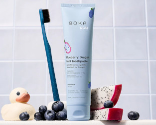 I have quite a collection of flavored toothpastes from Boka, although I did miss the now-sold-out Boka x Grillo's Pickles Cucumber Dill collaboration. The latest for kids (I buy those too): Blueberry Dragon Fruit. "Our Blueberry Dragon Fruit Flavored Toothpaste: Sweet. Juicy. Delicious. Our special ingredient (Nano Hydroxyapatite, or n-Ha for short, was used by astronauts in space!) mimics your tooth enamel and makes up 97% of your teeth material. Your little one will love our easy to use flip cap." $13 for 113g at Boka.