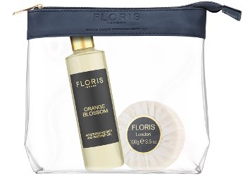 Orange blossom, anyone? "A unique Floris wash bag containing a bath and body duo of Floris Orange Blossom. Radiant top notes of neroli flowers lift the white floral heart notes of orange blossom and jasmine leading to a powdery, musky base. Orange Blossom Bath and Shower Gel - 250ml A luxurious perfumed bath and shower gel containing olive oil to gently soften skin while maintaining its natural balance. This mild yet richly foaming formulation leaves skin cleansed, soft and lightly scented. Orange Blossom 100g Triple Milled Soap Finely fragranced signature soaps, hand wrapped and triple milled with a vegetable base producing a rich creamy lather and containing added shea butter to help moisturise the skin." $35 at Floris (where you might also want to check out the Winter Sale).