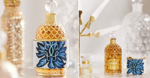 Not my lemming, maybe it's yours? Guerlain Imagine in a holiday bee bottle edition, featuring a cuff by jewelry designer Shourouk Rhaiem, which you can leave on the bottle or wear on your wrist. 3,310 were made; 125 ml + 30 ml + funnel, €790.