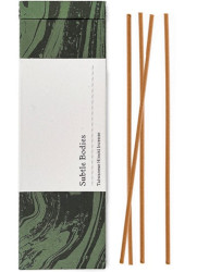 From Subtle Bodies, Taiwanese Hinoki Incense: "The Hinoki comes from a dedicated plantation situated in the mountain highlands of Taiwan. A prized wood and national treasure, celebrated both as a construction material and for its beneficial health properties. It has a fresh, yet deep woody scent which is familiar and clean - perfect for instilling a sense of calm and relaxation." 25 sticks for $35 at Luckyscent.
