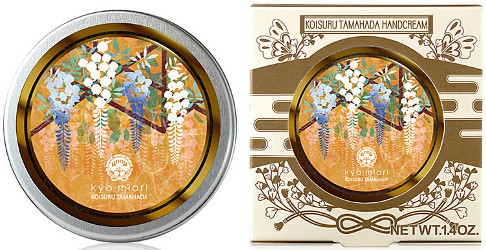 Kyo Miori's Koisuru Tamahada hand cream comes in 12 floral designs, one for each month. Shown is May, Wisteria. If the Barneys description is correct, all 12 share the same cherry blossom scent: "Gently wrap your skin with the faint fragrance of cherry blossoms. A hand cream so soft leaving you with silky smooth skin, without the stickiness. Adored by beauty experts, each charmingly decorated tin represents a quintessential element of the cultural essence of Japan." $20 for 42 ml.