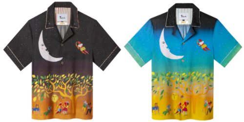 Let's say you love Hawaiian shirts and you've been lusting after a 1.5 ml sample of Le Labo Bergamote 22: this is the lemming for you. Numbered (!) limited edition unisex tencel shirts by Mexican artist Ana Leovy created for "escape wear" brand Tombolo ("It depicts whimsical revelers dancing under a lemon tree") at dusk (left) or dawn (right) are $158 each and come with the sample mentioned above ("Taking cues from the big lemon tree that dominates the shirt's scene, we selected a citrus scent containing floral notes of orange blossom and bitter grapefruit"). Ok?