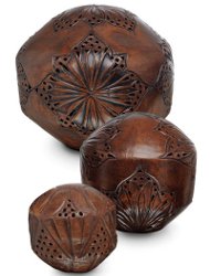 From Maitre Parfumeur et Gantier, Acajou Amber Balls: "...in the French tradition of pomanders, or highly perfumed balls used to fragrance the home. These beautiful terra cotta balls are finely crafted, chiseled, and patinated by hand. Then, a unique solid perfume of amber, balms, vanilla, and tree moss is placed in its heart. This sweet and warm amber scent will be diffused for several months for a luxurious and soothing atmosphere." $110-$225 at Luckyscent; the 50g refill jar is $85.