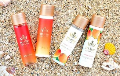 From Malie Organics, the Mango Jet Set Gift Set ("A sweet and sassy cocktail of mouthwatering tropical fruits. This aroma is an energizing blend of ripe mango, juicy apricot and succulent papaya accompanied by pulpy oranges touched by island sunshine.") With TSA sizes of shampoo, conditioner, body wash and body cream, plus a travel bag, $40 at Malie.