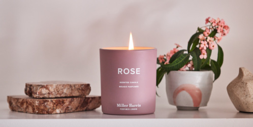 From Miller Harris, the Rose candle: "Fresh and luminous, the ‘Rose’ scented candle is a beautiful home fragrance that will fill your living space with the first rays of sunshine streaming on delicate petals of the rose. [...] The softness of pink and white roses, with gentle fruity accents of mandarin and blackcurrant. A rose fragrance to fill the air with floral notes for moments of serenity. A rose of modernity and beauty." $76 for 220g at Miller Harris.
