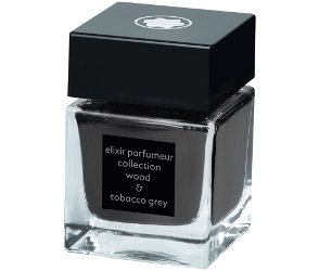 From Montblanc's Elixir Parfumeur series, gray ink in Wood & Tobacco: "The Montblanc Elixir Parfumeur collection embraces exquisite unisex fragrances, as well as the use of oils and the finest plants, to express maximum intensity. The scents stimulate emotions and memory through a reinterpretation of the most beloved raw material scents of all time. The fragrance of the Elixir Parfumeur Wood & Tobacco ink features a warm and woody aroma that can be highly potent. Agarwood is said to be the most expensive timber in the world. The deep gray color is inspired by the evaporation of wood and tobacco smoke." $77 for 50 ml at Pen Boutique.