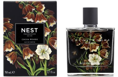 Nest’s “fine fragrance” collection started up in 2012 and currently includes twelve scents, by my count. Cocoa Woods, the newest addition, is described as a “woody-gourmand scent” with notes of cocoa, sequoia wood, white sandalwood, tiaré blossom and ginger. Like the rest of the line, it has a beautiful bottle with decoration inspired by eighteenth-century floral illustration and découpage. And it’s really the packaging that keeps me coming back to this line, because I’m still looking for a Nest fragrance to love…