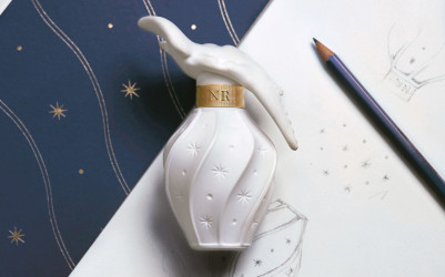 A limited edition bottle of Nina Ricci's L'Air du Temps (you can see last year's model here) decorated by gilder Anne Brun ("Applying her vision to the emblematic L’Air du Temps bottle, she translates delicate petal details into a finely crafted gilded cage that encloses the matte white bottle, creating a golden piece of art") with a new juice developed by perfumer Sonia Constant ("Inspired by Anne Brun’s delicate gilded creations, I wanted to create a jewel-like perfume. Blending tuberose flowers dipped in gold with sophisticated woods and creamy coconut, I imagined a fragrance for a radiant woman whose inner light shines on those around her"). In 50 ml Eau de Parfum, €113 at Nina Ricci.