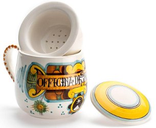 From Santa Maria Novella, a tea cup to match your perfume collection. "Multi-color cup for infusion. Handmade and decorated with natural pigments by master potters in Montelupo Fiorentino. The decorations are accurate reproductions of original designs." $60 at Beautyhabit.