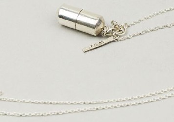 Sterling silver perfume pendants, hand crafted by Sophie Buhai, in Tiny (above left, 16" chain, $375) or Not Tiny (above right, 16 or 24" chain, $675). The larger size has a top that unscrews so you can add fragrance, but I think the smaller size is just decorative. There is also a collar design (not shown, 11" chain, $1750). All pieces are custom made to order. (found at vogue)