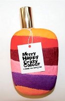 First, from Comme des Garçons, the “Merry Happy Crazy Colour” bottle: the house’s standard bottle wrapped in bright paper maché and inspired by the work of assume vivid astro focus. Reportedly coming soon, in Comme des Garçons 2 and Wonderwood…