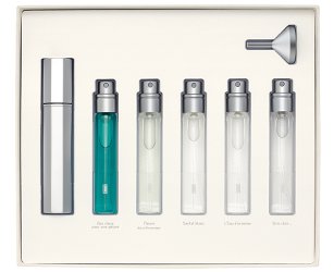 A lemming too late — I would have killed for some version of this 10 years ago. The Serge Lutens Eaux de Politesse Eau de Parfum Discovery Set, with 7 ml sprays of Des clous pour une pelure, Fleurs de citronnier, Santal blanc, L'Eau d'armoise and Gris clair. $125 CAD at Holt Renfrew.
