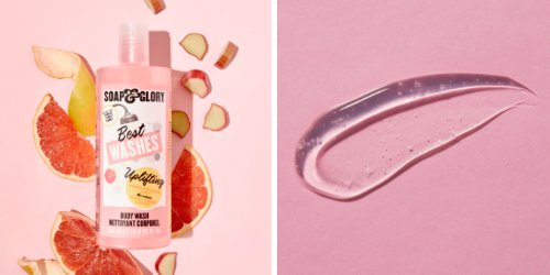 From Soap & Glory, Best Washes Uplifting Body Wash: "It’s scented with Soap & Glory’s Uplifting fragrance blend. A citrusy, fruity floral fragrance featuring top notes of zesty grapefruit, bergamot, rhubarb and red fruits. With a heart of peony and rose finishing on a musky base of cedarwood, raspberry and vanilla. You’ll be a’wash with joy!" 500 ml for $10 at Ulta.