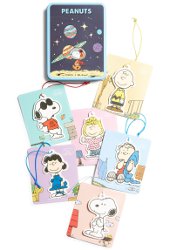 Aha, just what I (probably? maybe?) needed: a tin with six Peanuts hang tags from Oh Scent. Snoopy is fruity, Linus is powdery, Charlie Brown is green. $40 (about $30 more than I would have guessed) at Nordstrom, where you'll also find Peanuts Car Clips Air Fresheners ($48).