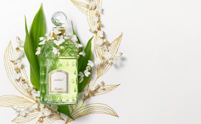 Guerlain's 2020 iteration of Muguet (here is 2019, and 2018): "Creative studio Maison Massillon conceived a custom floral decoration made of unfired porcelain that crowns the dome of Guerlain’s iconic bee bottle (Pochet du Courval). Designed to celebrate the return of spring, it is composed of white flowers and stamen affixed to 24-carat gold-plated wire." €550 for 125 ml plus a 20 ml travel bottle in white leather sheath. (via luxepackaginginsight)