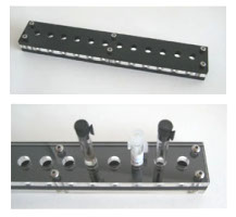 Made on Request, a New Mexico-based company, has introduced a perfume sample holder in clear and black acrylic with brass and stainless steel hardware:
