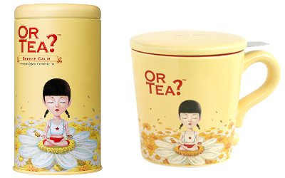 From Or Tea? in the Netherlands, Beeeee Calm Chamomile Infusion ("Nothing is better than having a cup of Camomile to wind down your day. Close your eyes, take a deep breath, and imagine being surrounded by nothing but a sea of flowers. Even flying bees are calmed down by your inner peace") in a 50g tin (€11.50) and matching Ceramic Mug with Stainless Steel Infuser (€19.90).
